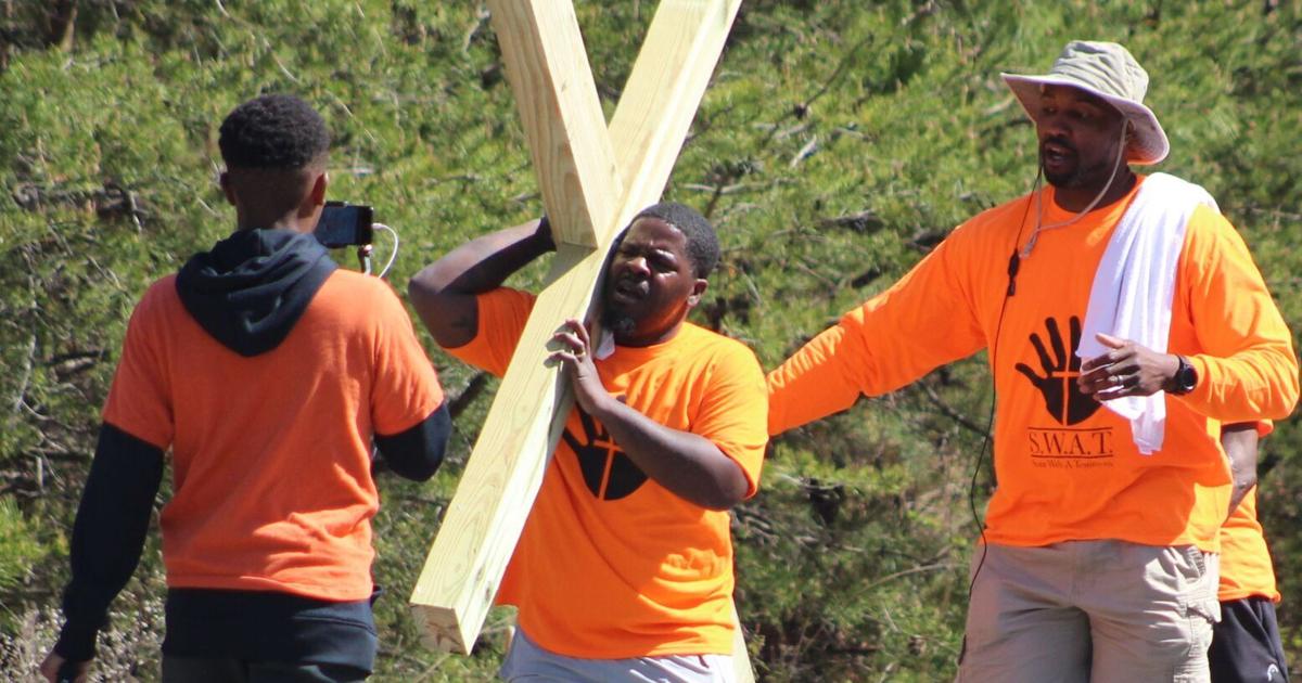 “I’m not 5-foot-4 like Jesus was,” Cevis said, noting he is taller. “It’s a heavy cross.”